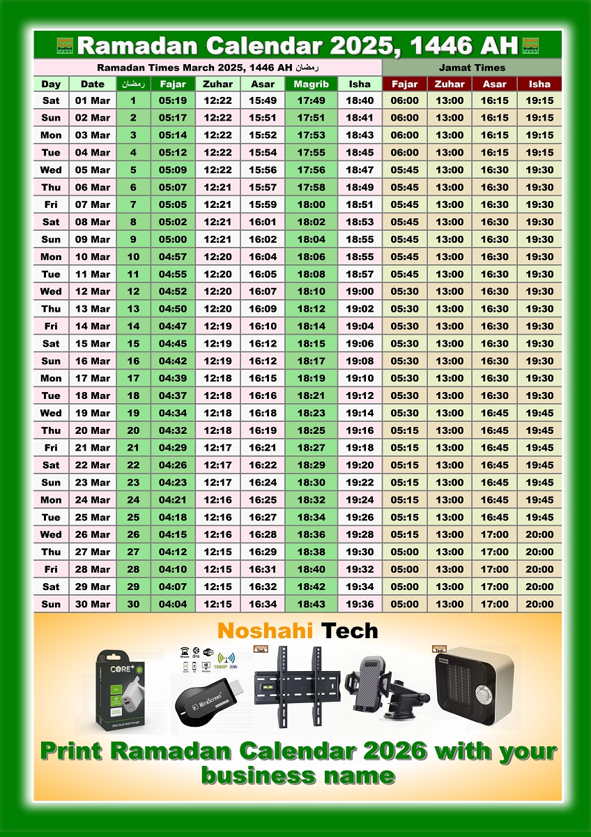 Print 12 or 24 Months Hijri A4 Calendar with your business name, contact me on whatsapp.